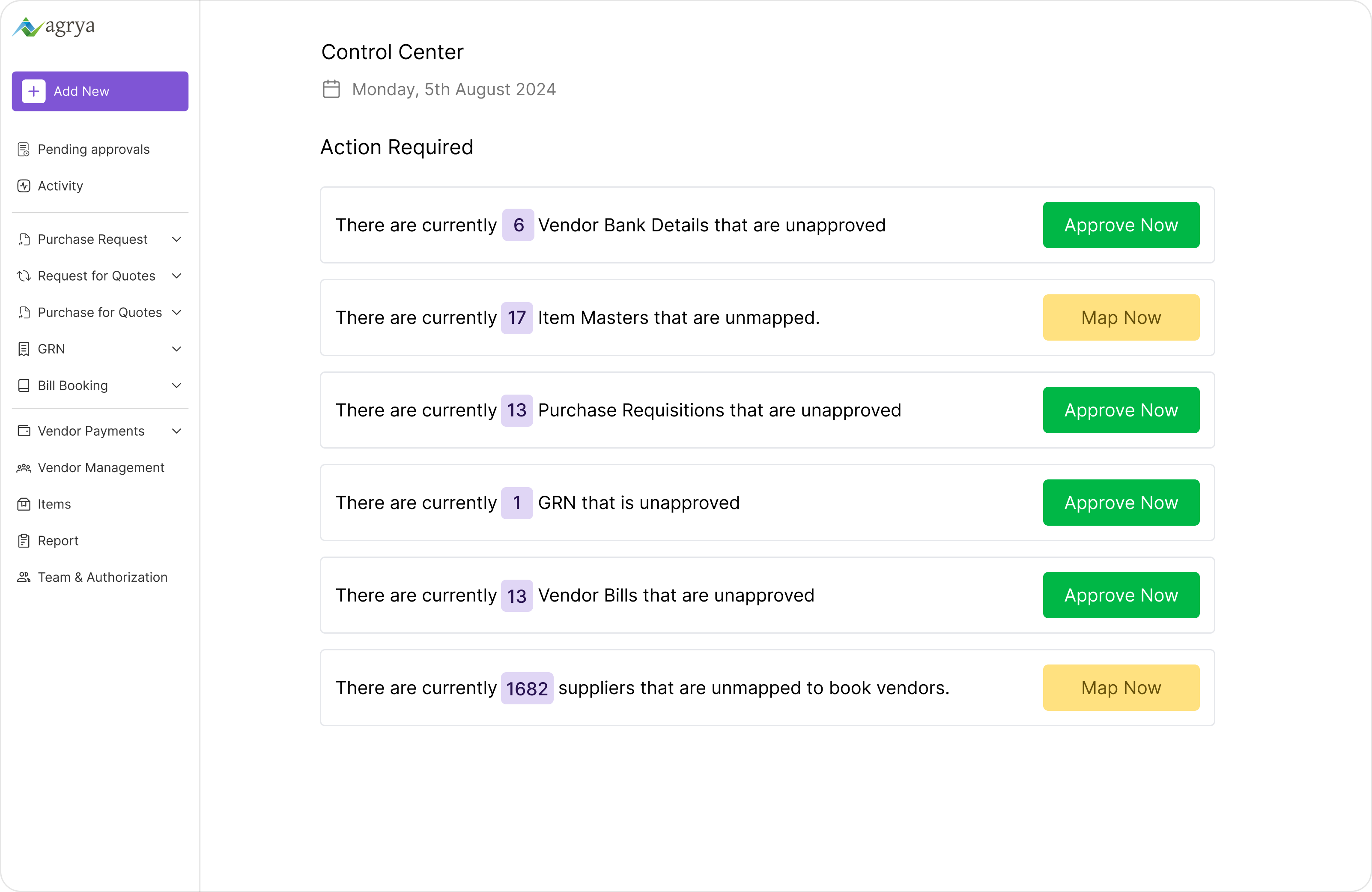 End to end procurement management solutions with custom approvals, GST integrated vendor on-boarding,